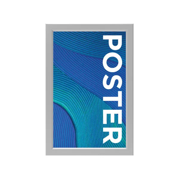 xTrappa Poster Frames feature snap-edges, which easily open from the front to allow for quick and easy, graphic changes with no tools required. This sleek framing system features a set of spring-loaded aluminum extrusions mounted to a high-impact polystyrene backer, and frames are available in a variety of sizes and in black or silver finishes. All frames come standard with clear non-glare lens, fully assembled, and ready to hang.